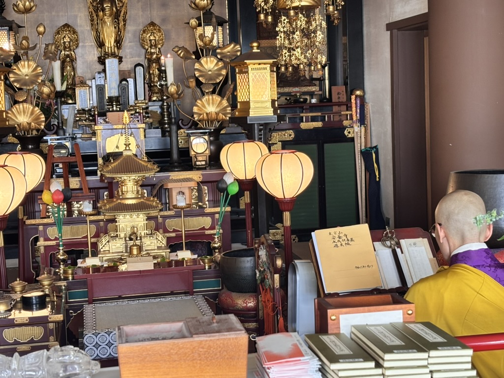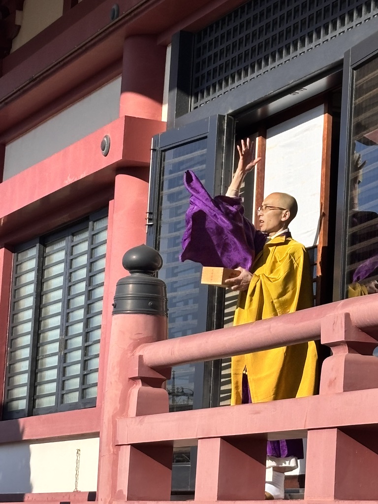 本堂にてお経をあげ、その後、庭にて豆まきをいたしました。